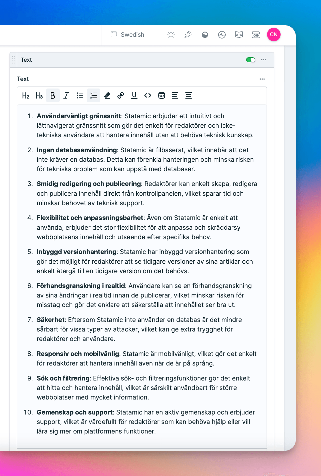 Flexibelt för redaktören med många möjligheter att anpassa sitt innehåll
