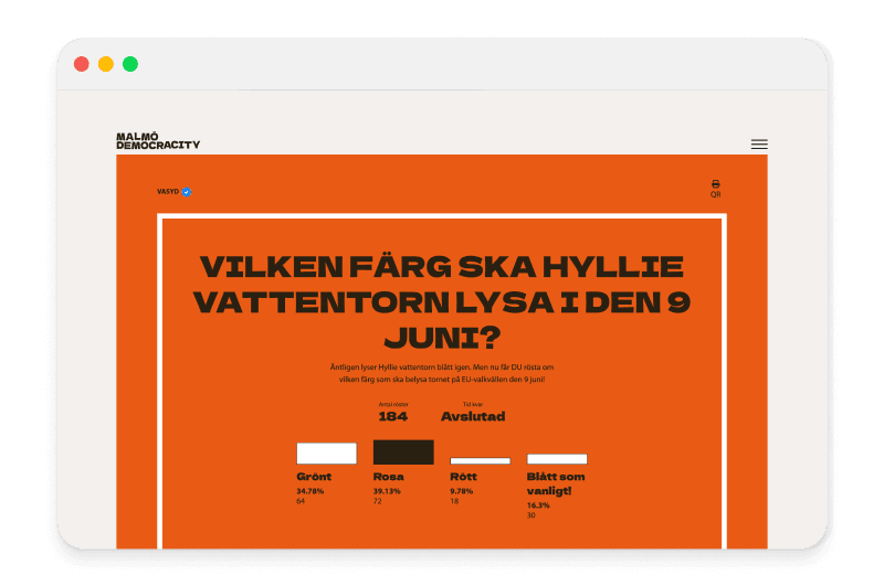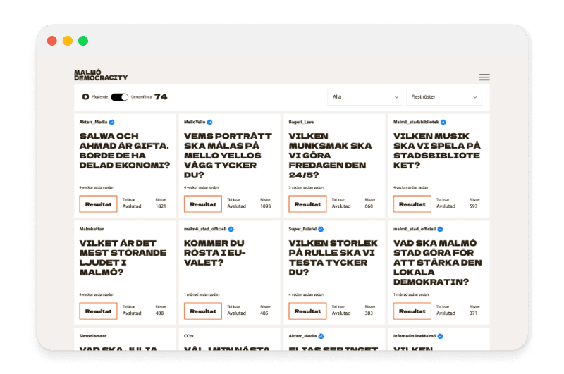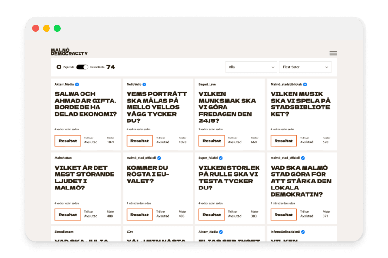 Resultatet blev en sida där besökare och partners till Malmö Stad kunde skapa egna omröstningar, och låta allmänheten att göra sin röst hörd i dessa.
