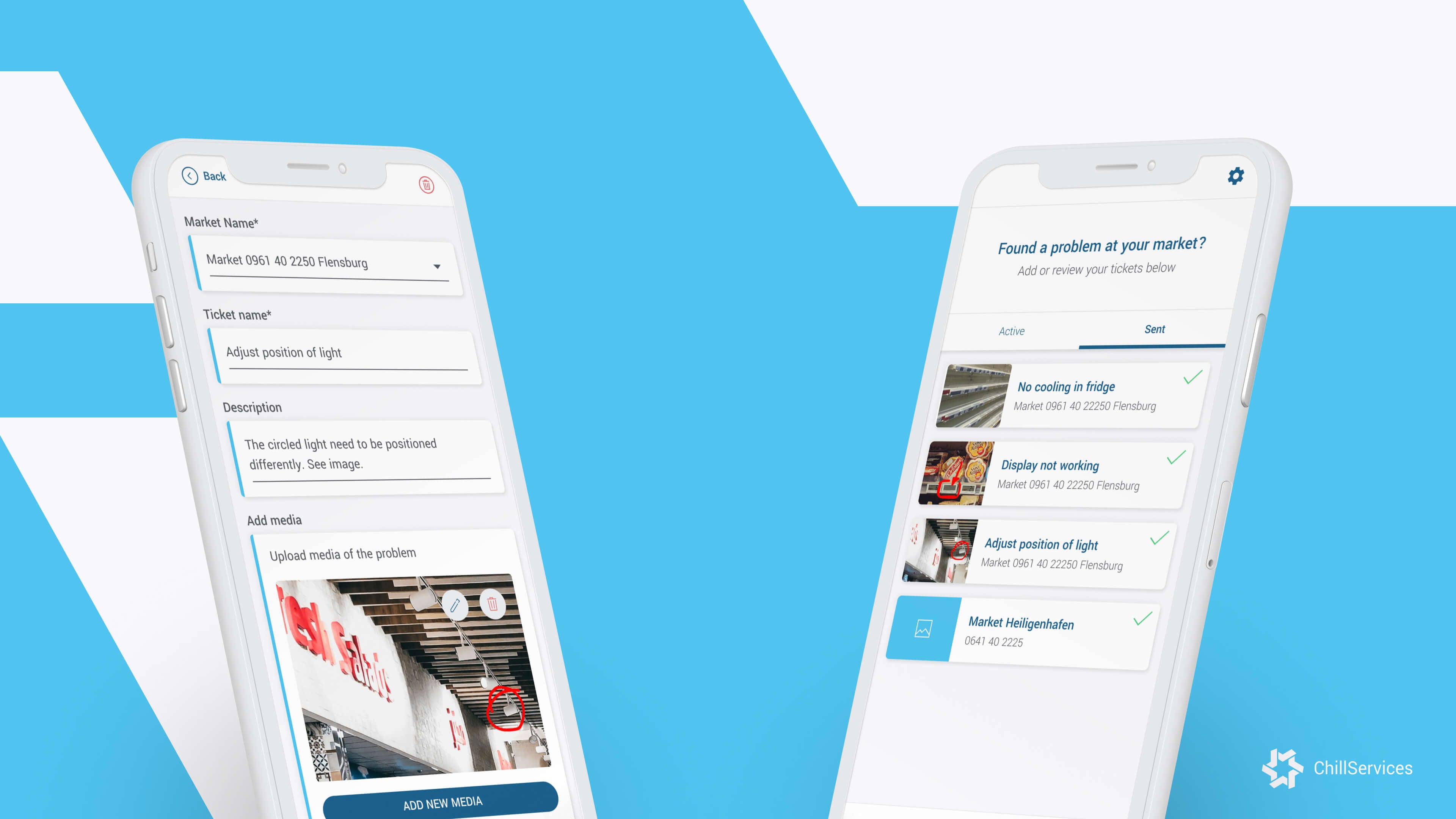 För vår kund ChillServices har vi byggt appen QuickTell – ett arbetsverktyg för personal inom dagligvaruhandeln. Med QuickTell dokumenteras och rapporteras alla olika typer av problem som kan uppstå med värme-, ventilation- och kylsystem såväl som fysisk påverkan i butiker. Användaren skapar en rapport, knyter den till en specifik butik och med hjälp av det inbyggda stödet för foto och video samt ett ritverktyg kan man detaljerat redogöra för vad som bör åtgärdas. QuickTell byggdes med React Native och finns tillgängligt för både iOS och Android.